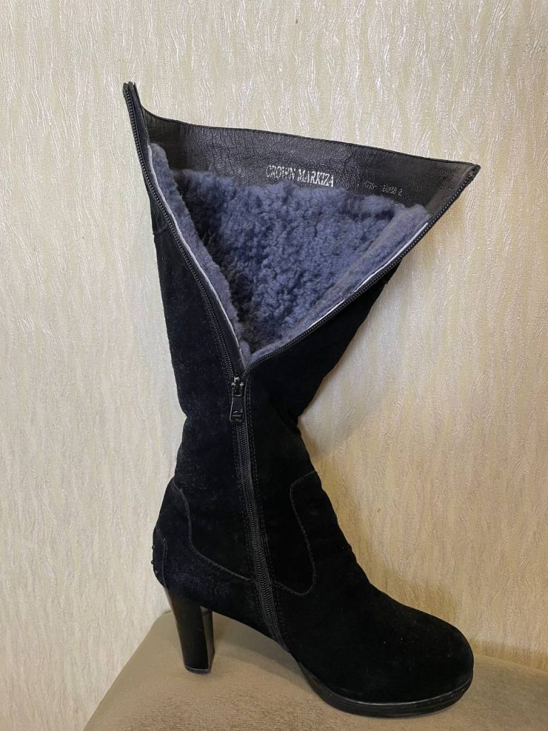 Продам, в хорошем состоянии, зимние сапоги, цвет черный, верх натуральный замш, натуральный мех, размер 38, каблук 9 см.
