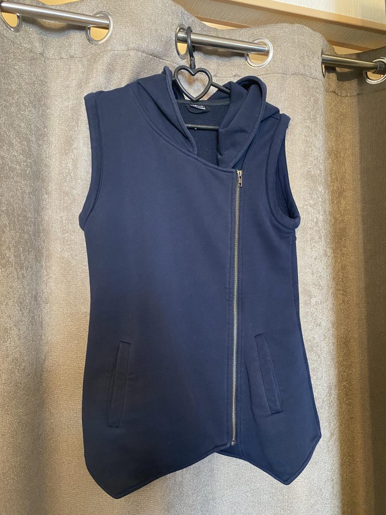 Хорошая жилетка, теплая. Носила несколько месяцев, следы носки есть, но незначительные. На 48 размер.
