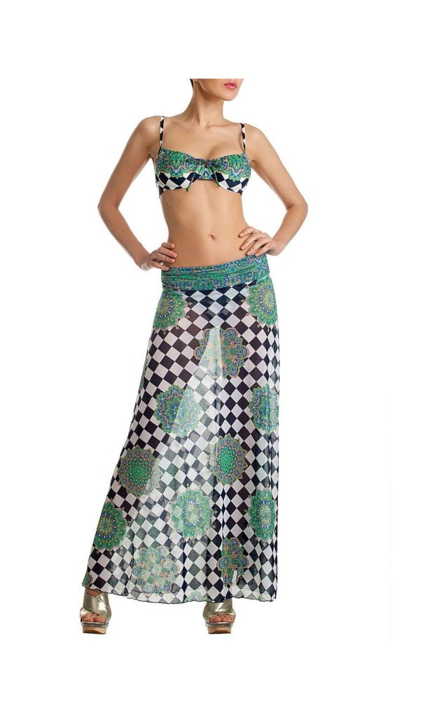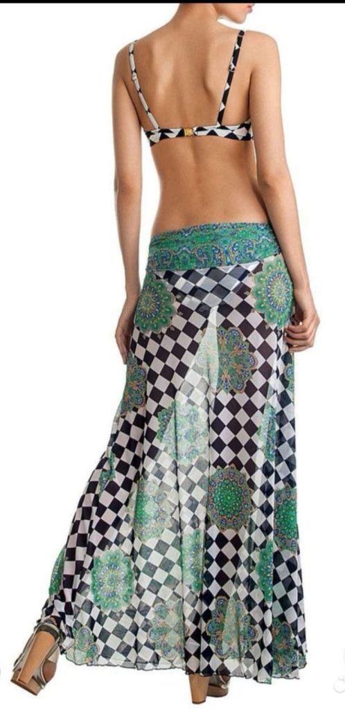 Продам шикарный новый пляжный комплект итальянской марки Charmante, с бирками. Размер 40 C (соответствует российскому 46). Комплект состоит из купальника и длинной пляжной юбки из специальной высококачественной сеточки. Юбку можно надевать на бедра и над грудью, тогда смотрится как пляжное платье. Купальник с низкими открытыми плавками, чашка у бюста мягкая на косточках, без какого-либо уплотнителя. Продаю только комплектом. Исключительное качество и оригинальный дизайн.