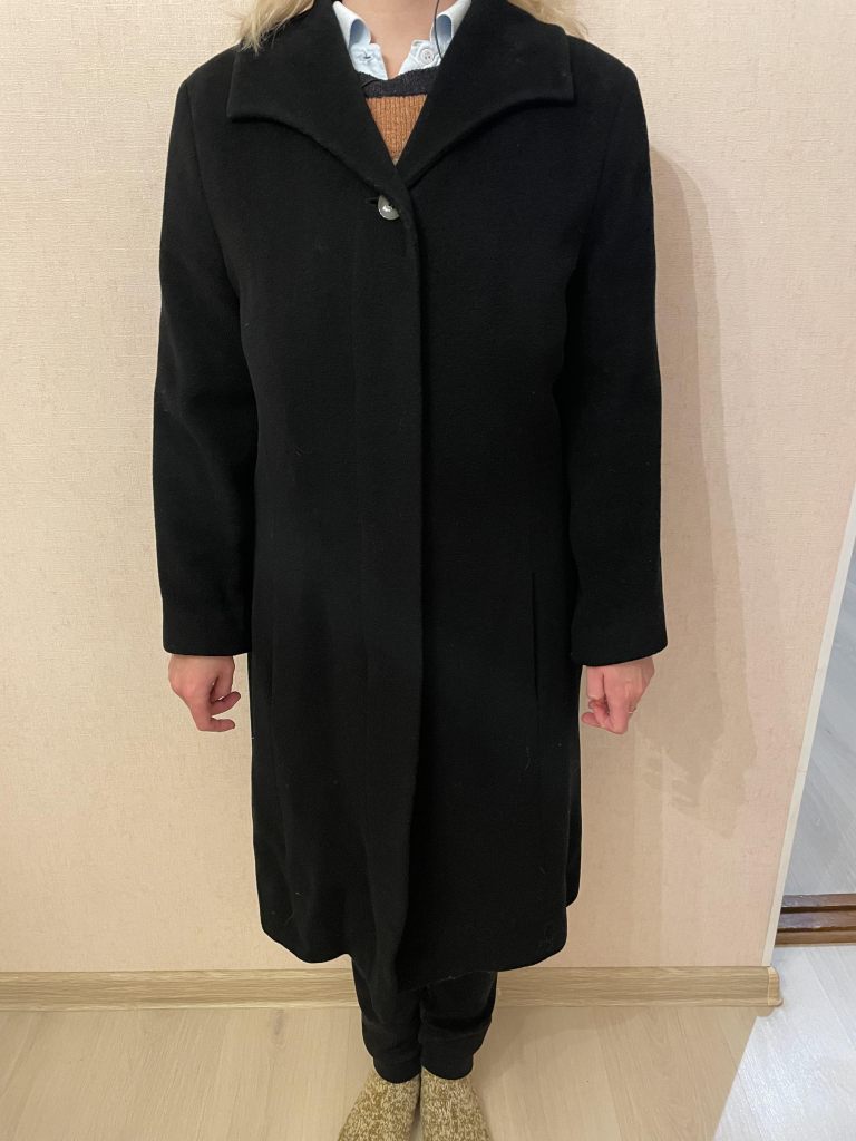 Пальто женское черное, осень-весна, шерсть/ангора 70/30%. Размер 50, рост 170. 1500₽