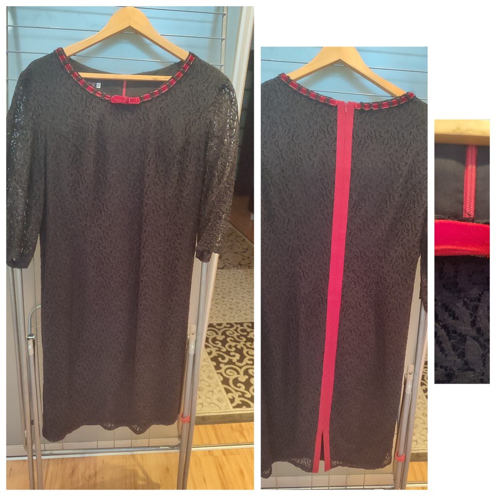 Продаю платье на выход. Чёрный гипюр с подкладкой, слегка приталено, длина за колено, по вороту и на спине - отделка красным - очень элегантно. Надевала два раза. Европейский размер 48, на наш 54