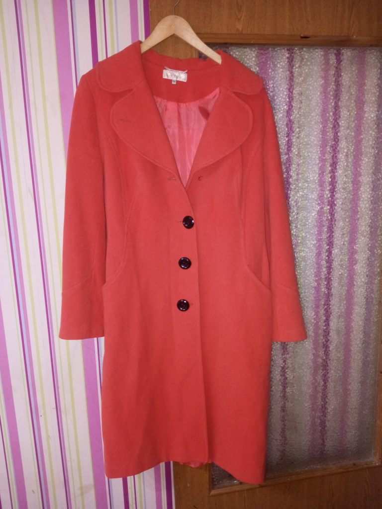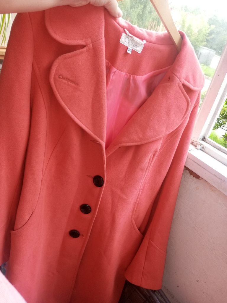 Пальто в отличном состоянии, размер 52, цвет в реальности коралловый, цена 300