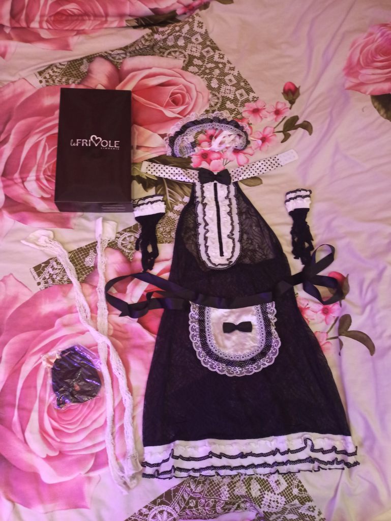 Укороченное соблазнительное платье со шнуровкой спереди и на спинке гарантирует идеальную посадку по фигуре. Низ юбки и линия декольте богато декорированы лебяжьим пухом. Платье дополнено съёмным пушистым хвостиком. Ушки на ободке и перчатки-митенки украшены пухом.