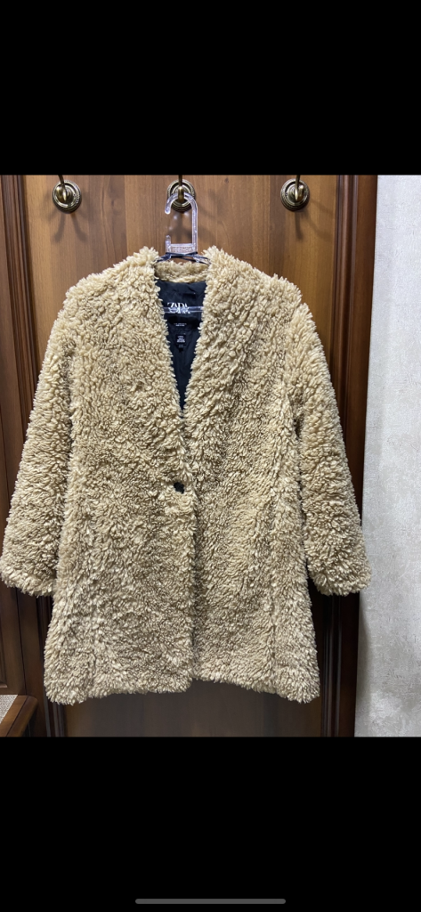 Пальто из искусственного меха бежевого цвета. Фирма ZARA. В хорошем состоянии. Размер EUR S; USA S; MEX 26. Объём груди 48 см.*2; плечи 43 см.; длина пальто 79 см.; длина рукава 104 см. Торг уместен.