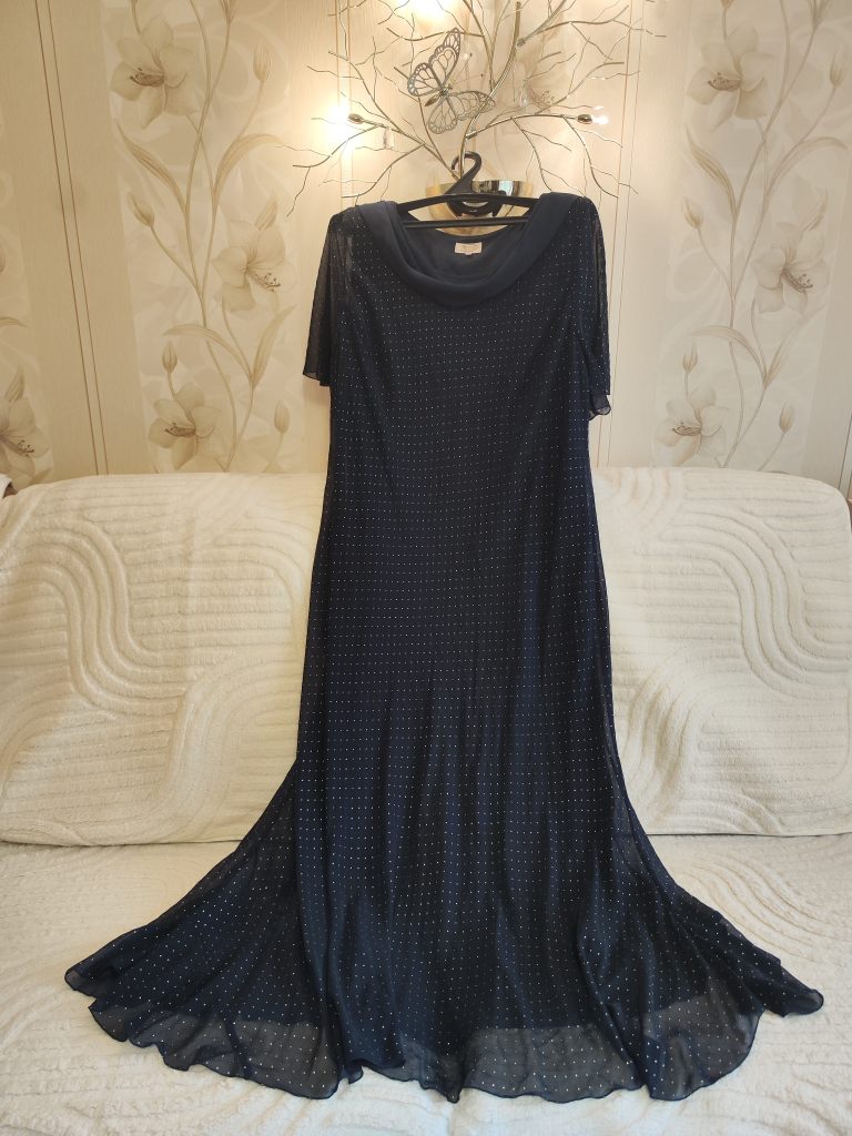 Красивое праздничное длинное платье 56 размер,Одевалось один раз.Цвт синий с золотистыми капельками,,на подкладке.