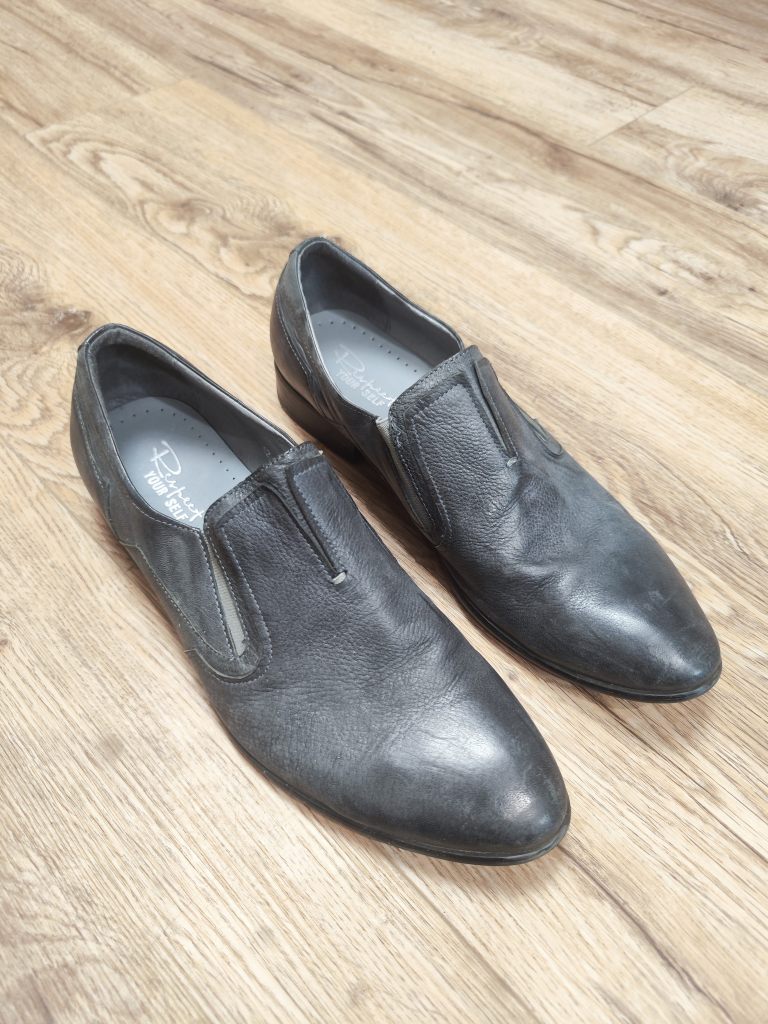 Фирменные серые кожаные муж туфли Respect