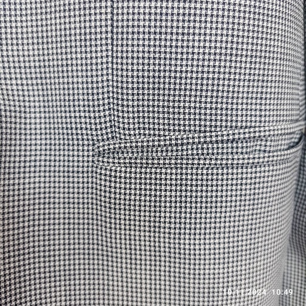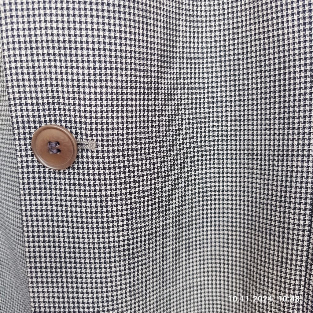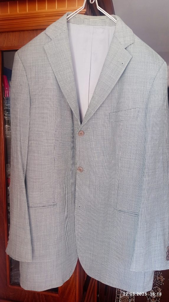 Пиджак однобортный, очень легкий по весу, три кармана сверху и два потайных изнутри.