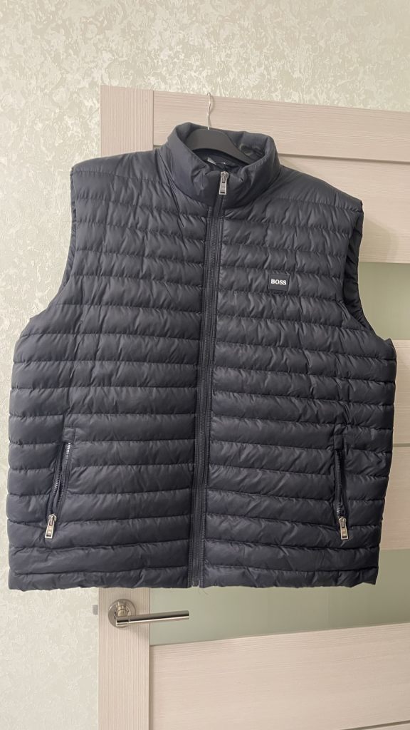 Мужская жилетка от Hugo Boss, размер 68 (7XL), в отличном состоянии. Синий цвет и материал из полиэстера обеспечивают комфорт и долговечность. Наполнитель пух