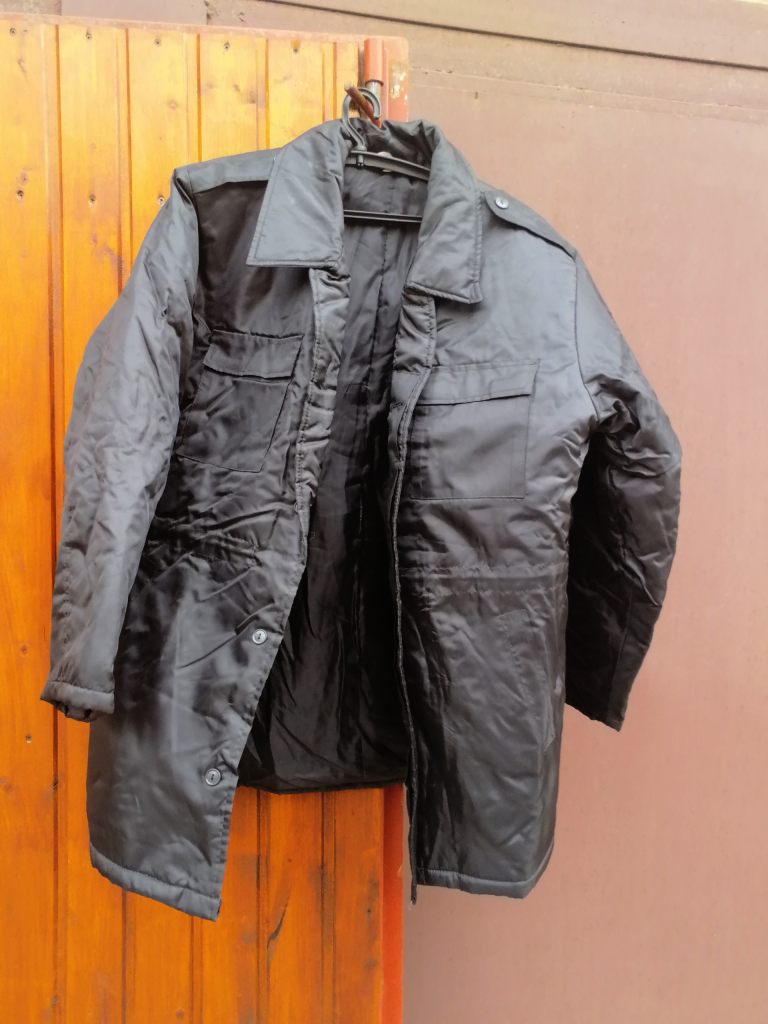 Состоит из куртки и штанов, все на пуговицах. Капюшон не предусмотрен.