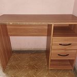Стол очень крепкий, размер 50×110. Из недостатков только надо подклеить в некоторых местах кромочную ленту.