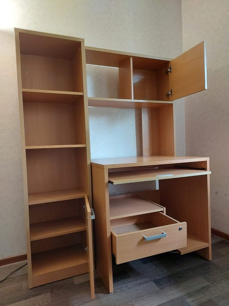 Продам стол для занятий. К нему полки и колонна. Б/У. Состояние хорошее. Продаю в связи с переездом. Есть не большой скол на нижней полке, под столом