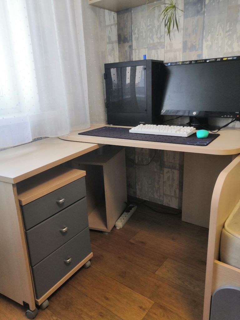 Комплект мебели для детской 2 шт (стол с выдвижным уголком (правый, левый), тумба с тремя ящиками, шкаф навесной с тремя отделениями). Цена 1 комплекта