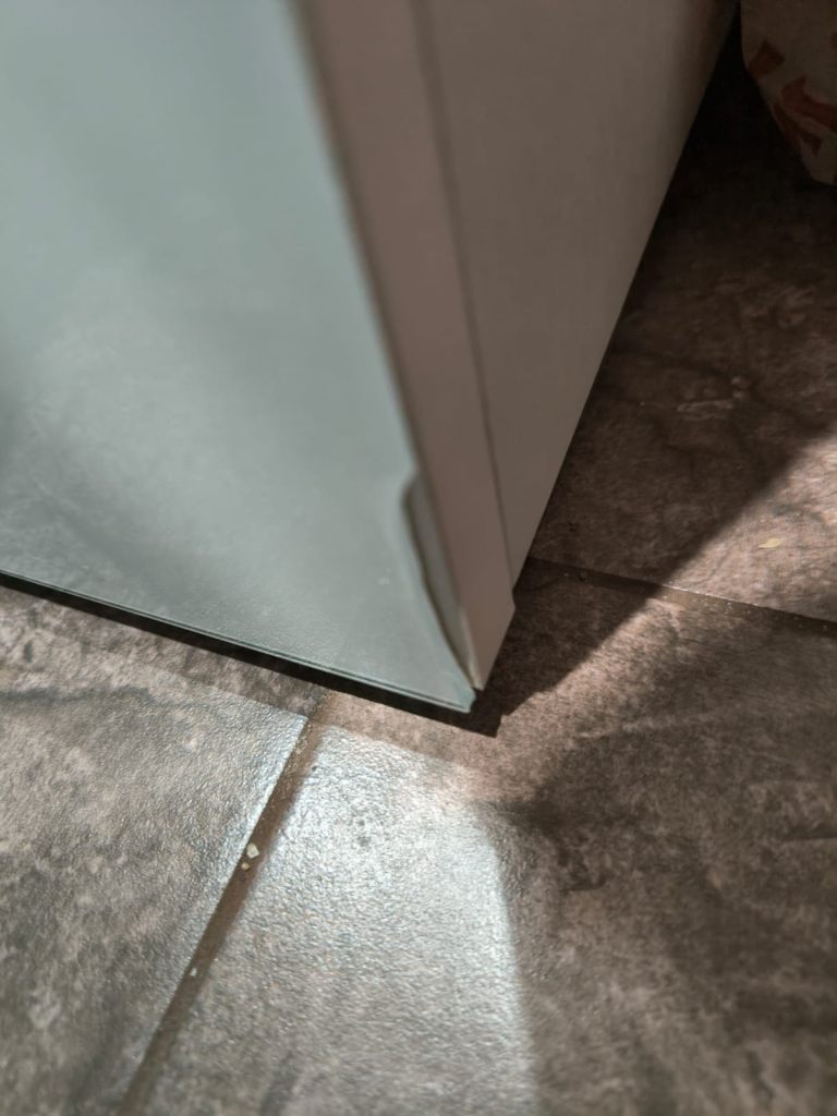 Внизу двери вертикальной имеется скол по стеклу небольшой, но его, честно говоря, толком не видно(на фото вид скола приложила).