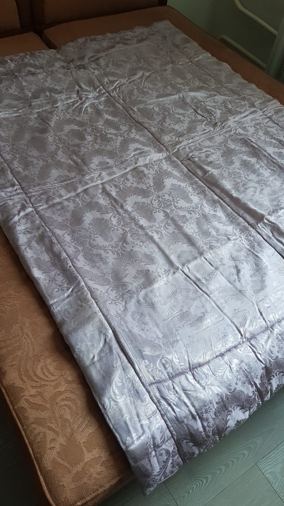 Одеяло полутороспальное. 130 на 180см. Ручная работа. Верх - атлас. Наполнитель - синтепон.