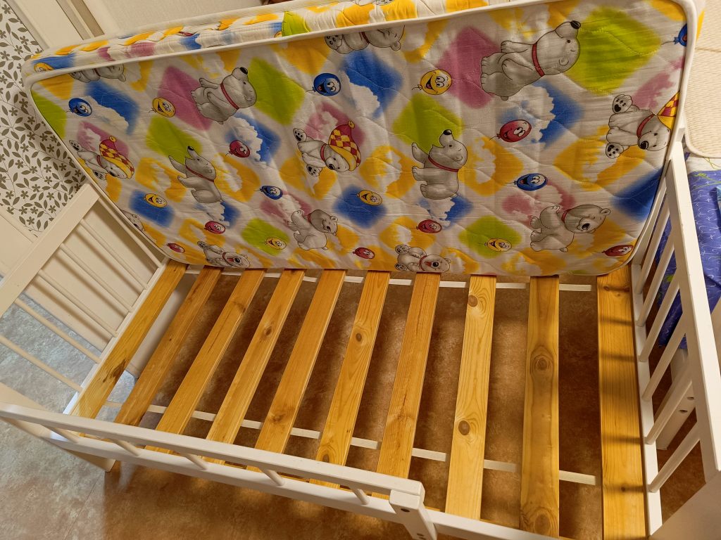 Продам детскую кроватку, 140*70 , есть небольшие потёртости, на функцию не влияет, уже разобрана) матрас в комплекте, если нужно, отдам постельное и одеяло