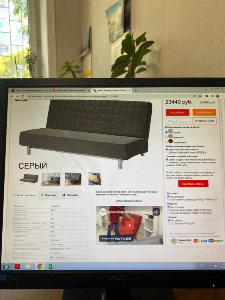 Диван в отличном состоянии- серого цвета(укомплектован полностью по описи Бединге)..Спальное место-136х200см.Основа-металлический каркас.