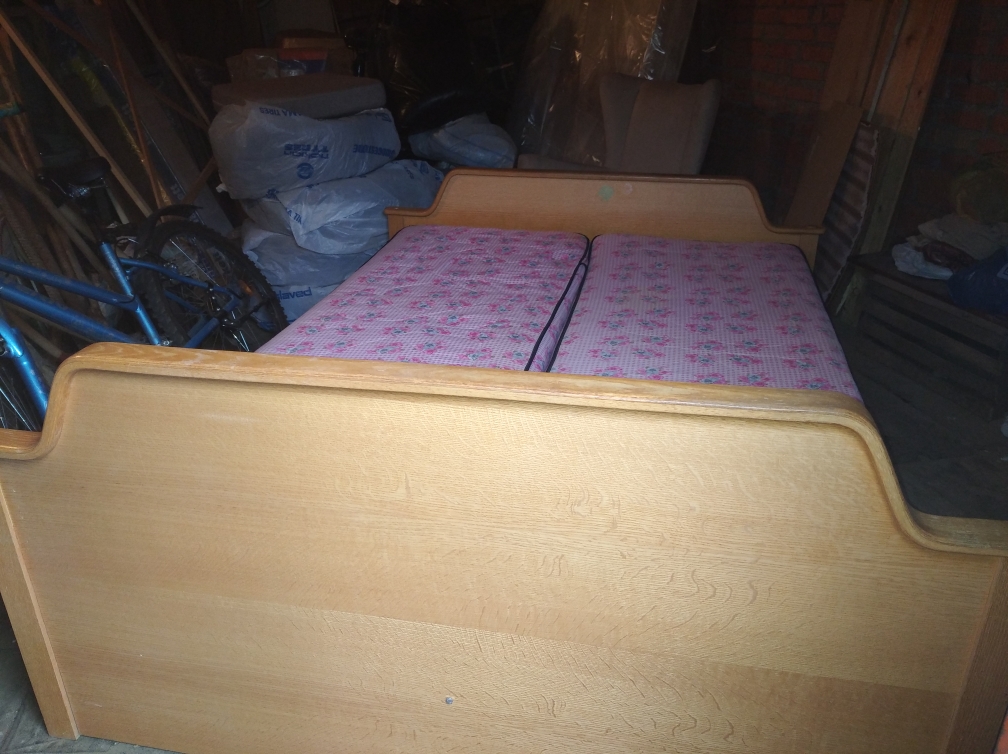 Продам двуспальную кровать с матрацем из дерева.