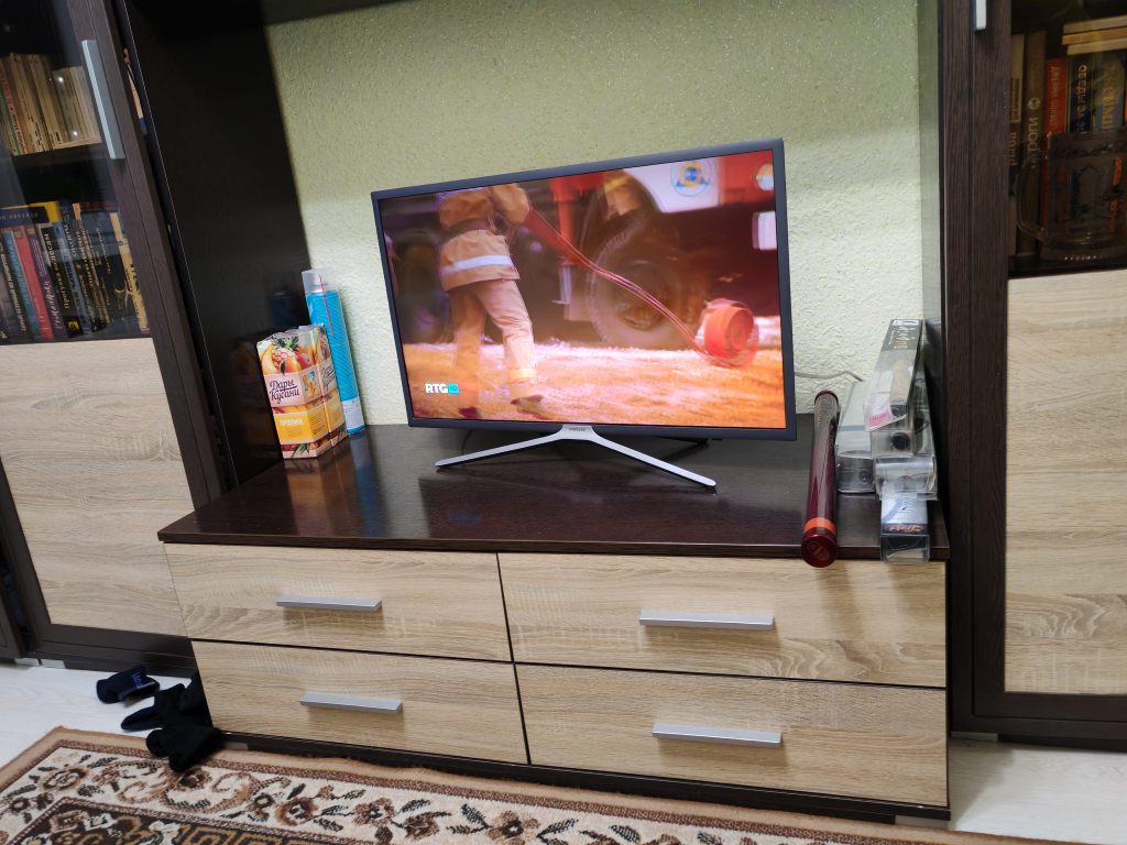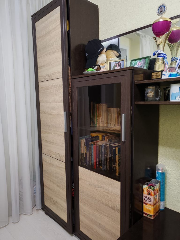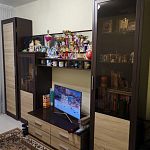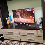 Стенка в очень хорошем состоянии. Цвет венге/дуб Сонома. Ширина 3 м, высота 2,1 м, глубина 37 см, тумба под ТВ с четырьмя ящиками 56 см, зеркало. Шкафы: один платяной, другой с полками, средний шкаф — с полками.