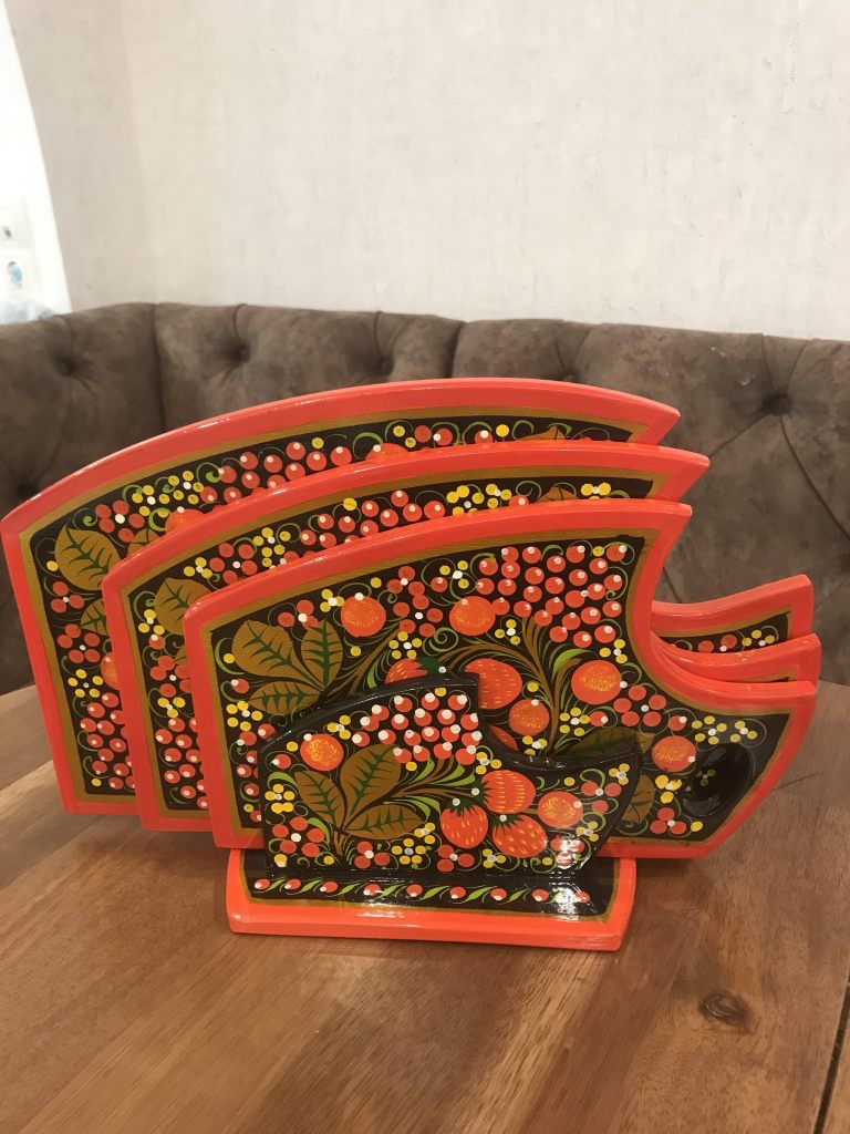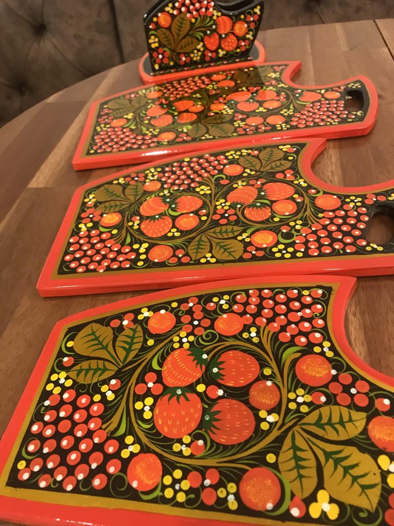 Набор разделочных досок из дерева расписан вручную, и покрыт прочным прозрачным лаком.