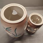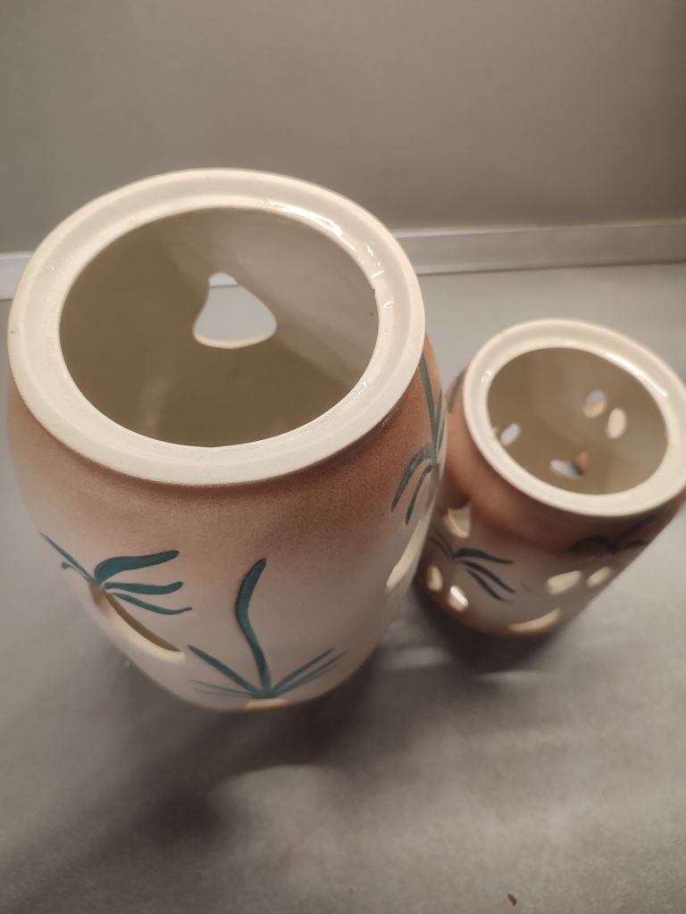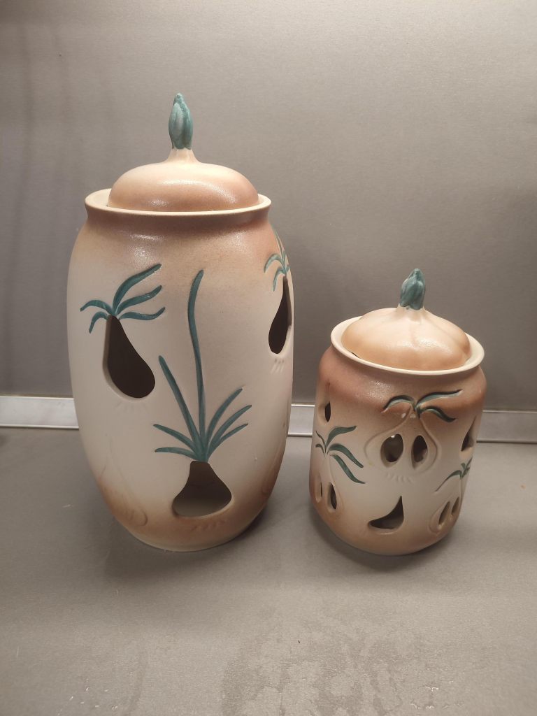 Оригинальные эксклюзивные ёмкости для хранения лука и чеснока. Высота для лука - 37 см, для чеснока 25 см. Продаю набор. Использовался очень недолго, сколов и повреждений нет. Отличный подарок хозяюшке или презент для дачи.