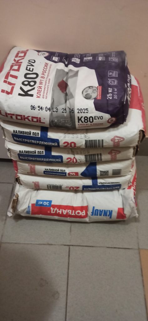 Продам излишки стройматериалов. Все свежее. Клей litokol k80 evo=1 мешок 500 р, knauf Ротбард 1мешок = 200р, наливной Пол старатели 4 мешка=150 р мешок. Или отдам все вместе за 1000р. В подарок сетка и правило.