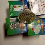 Все лампы 220 в и с цоколем( GU 5.3).Светодиодные мощностью-3 вт.Галогеновые-35 и 50 вт.
