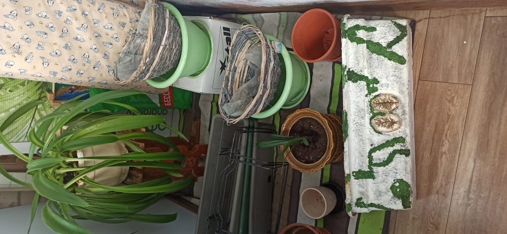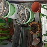 Продам 3 балконных ящика с креплениями, 2 подвесных кашпо плетеных на цепочках, балконный ящик большой, плетёное кашпо прямоугольное, 2 больших пластиковых горшка, несколько поменьше, большой горшок с гиппиаструмом. Керамический горшок с ростком кливии. В одни руки. Самовывоз