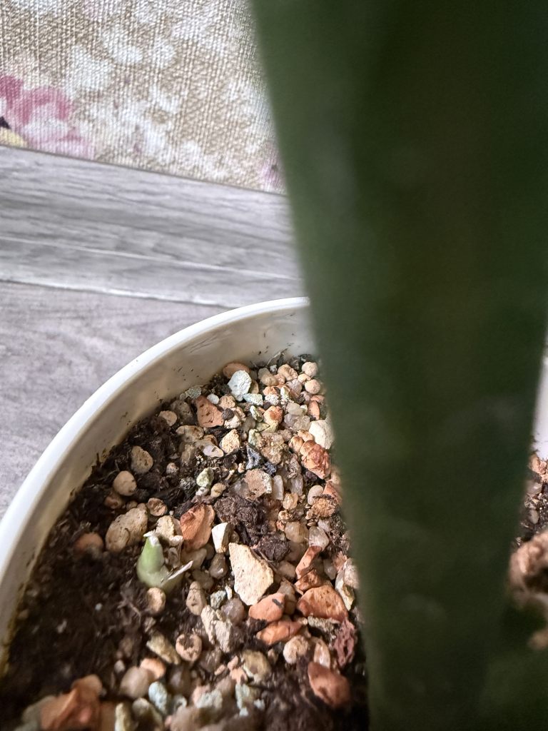 Взрослое растение (50см от почвы) + две детки + еще одна проклевывается.
