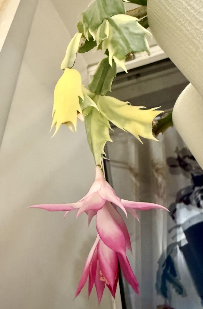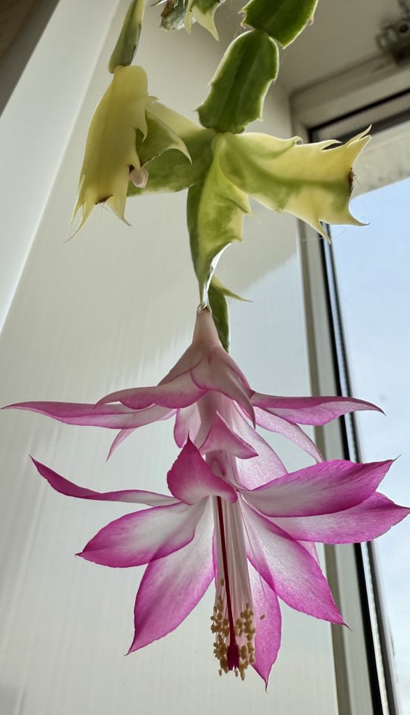Шлюмбергера Madame Butterfly (Мадам Баттерфляй) — это разновидность декабриста с крупными цветами и вариегатной (пёстрой) листвой.