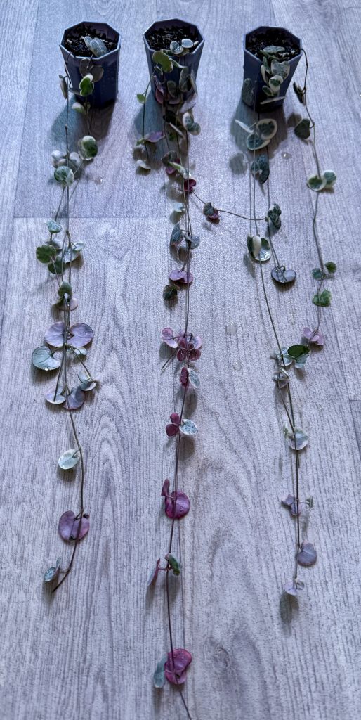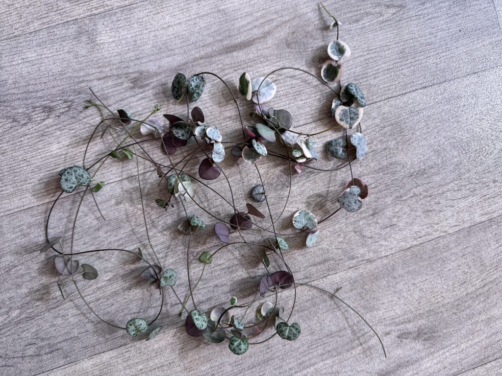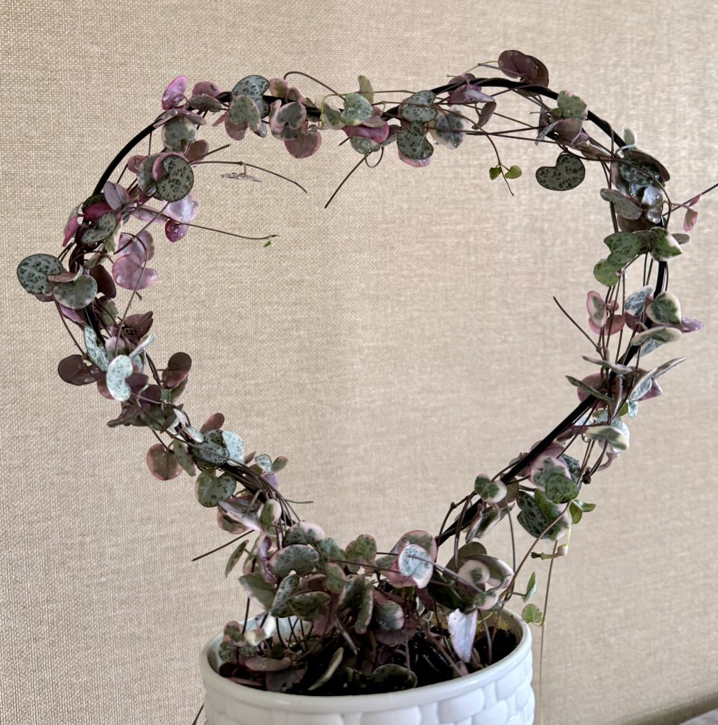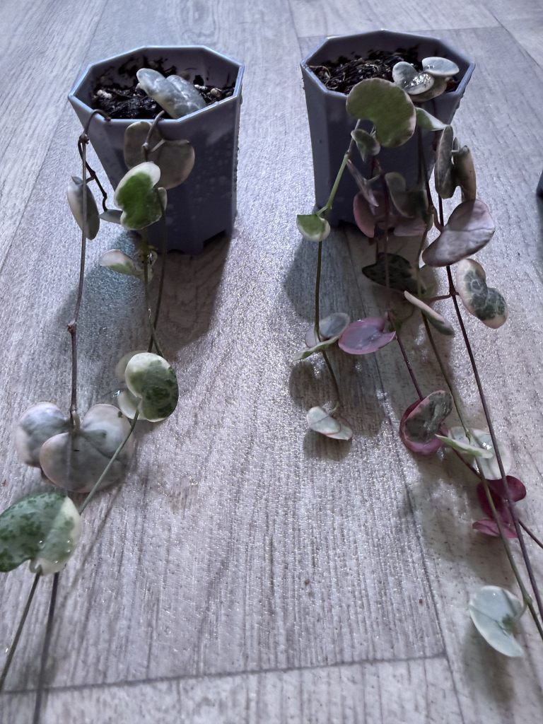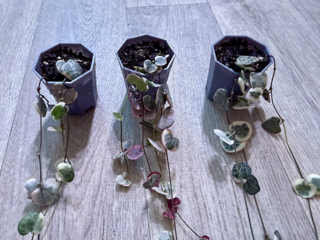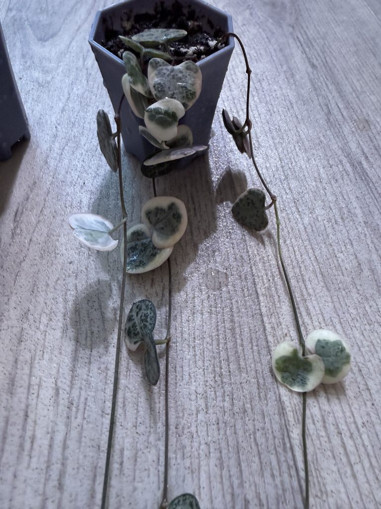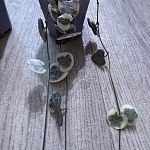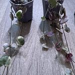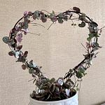 Церопегия вариегатная (Ceropegia woodii variegata) — суккулентная лиана с ампельным ростом, известная как «цепочка сердец». Её тонкие нитевидные побеги украшены парными сердцевидными листьями с мраморной вариегатной окраской: на зелёном фоне присутствуют белые, кремовые и розовые штрихи.
