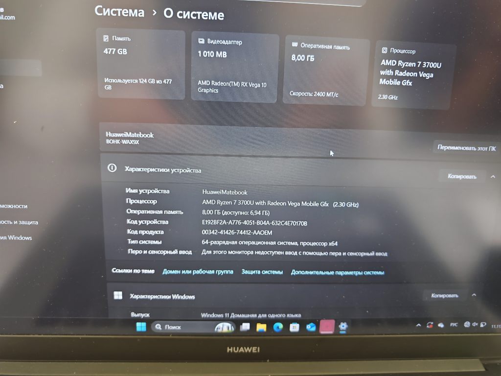 Продан Huawei matebook d14 2020 в хорошем состоянии