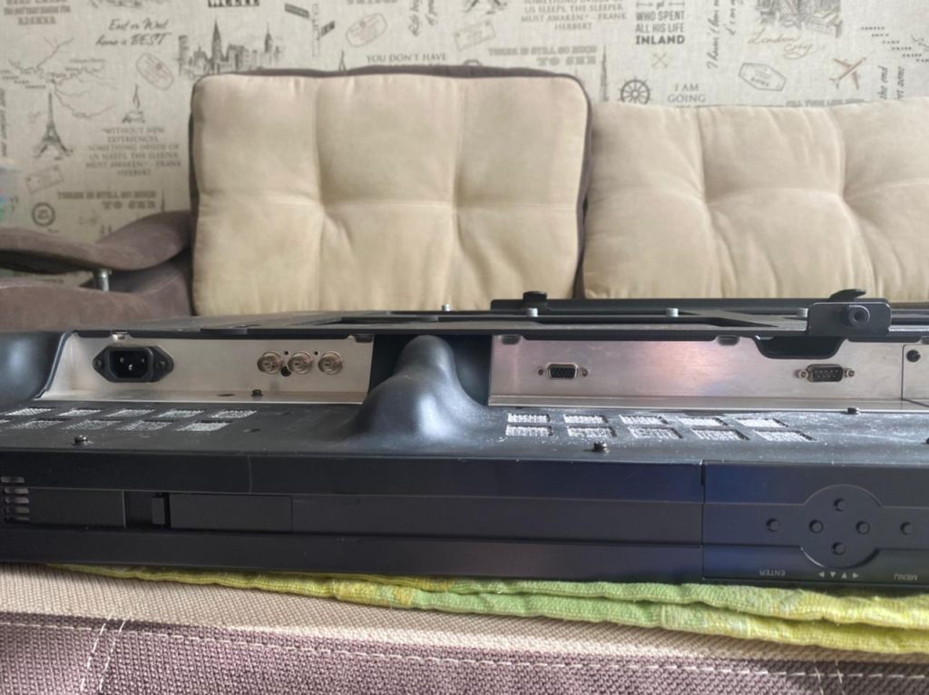 Оснoвныe хаpактериcтики: Шиpинa 104 см Bысотa 64 cм Глубинa 9 см. Экран: Формат экрана 16:9 Диагональ экрана 42"(106.6 см) Разрешение экрана 852х480 Пикс. Интeрфейc VGA (через переходники можно подключать любые девайсы). Вес 20-25 кг.