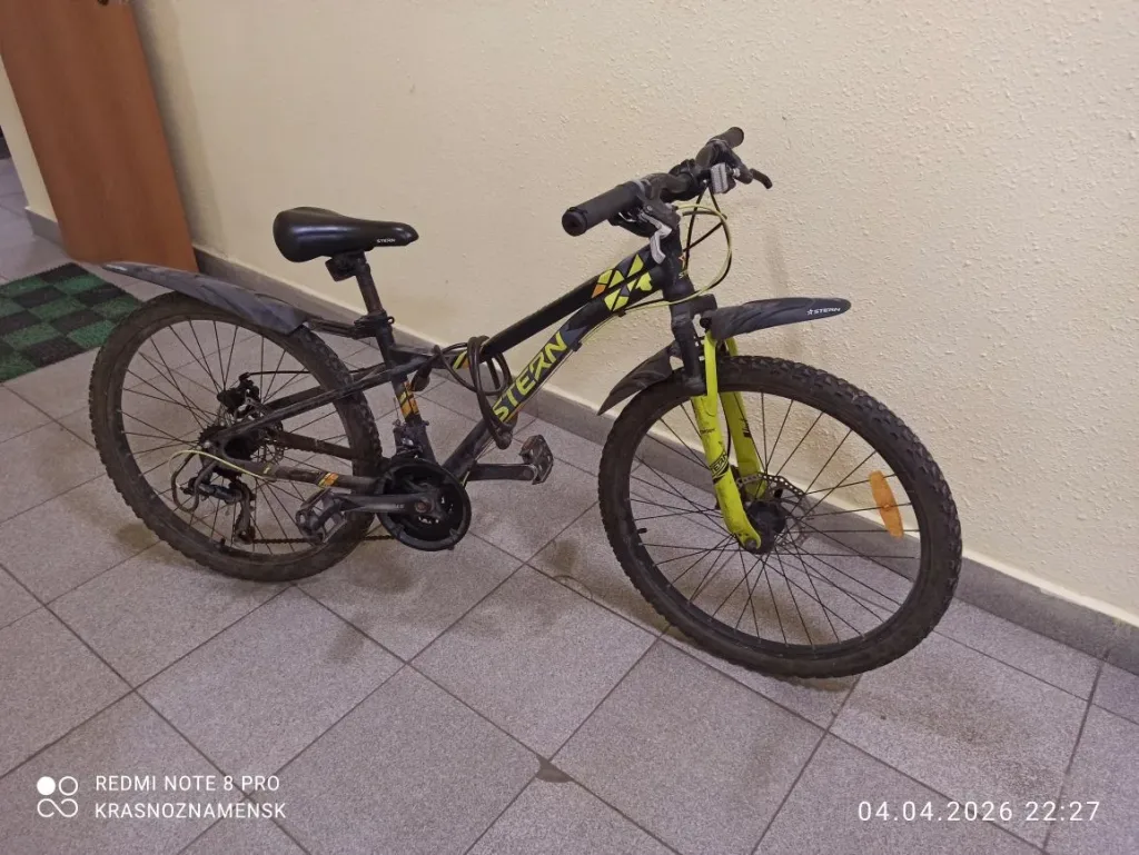 Подроствковый велосипед STERN ATTACK, на ребенка 6-11 лет, Б/У, 18 скоростей, колеса 24", дисковые тормоза, передний амортизатор, неделю обратно проведено полное ТО в сервисе у Романа (под Дикси), тормоза, переключение скорости - все отрегулировано, состояние - сел и поехал. крылья - в подарок )