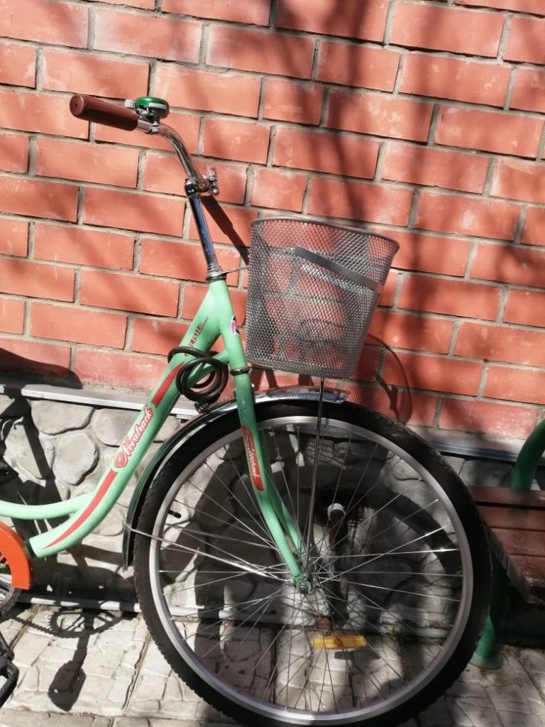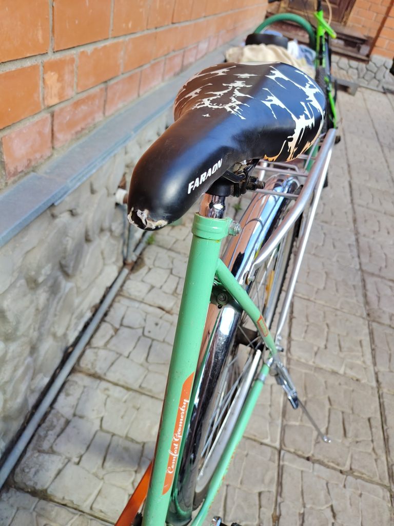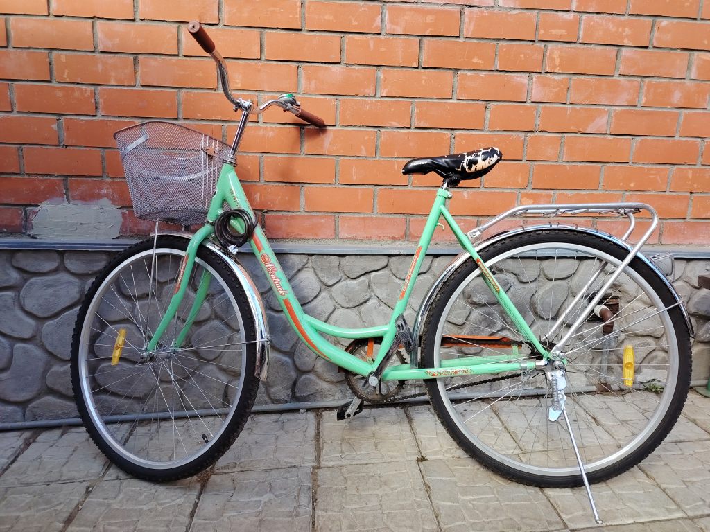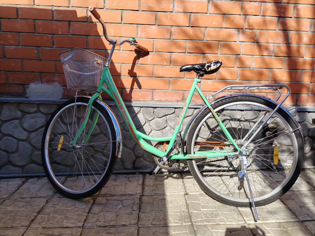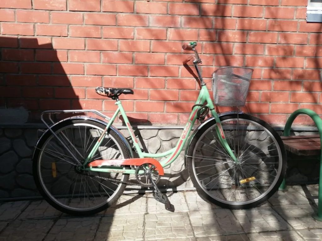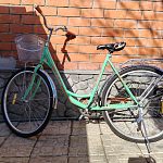 Велосипед городской, с низкой рамой, багажник, корзина, колеса 28", в хорошем состоянии, все работает, тормоза ножные, подножка есть. Проводилось техобслуживание, чистый. Из минусов - потёртость на сидении. На рост от 170 см.
