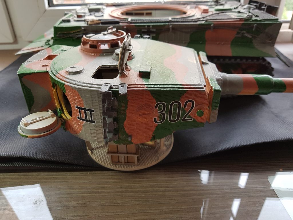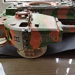 Модель комбинированная, основные части танка выполнены в металле, элементы отделки из пластика. Все детали грунтовались аэрозольной грунтовкой "Слоновая кость". В качестве наружного покрытия использовались акриловые краски.