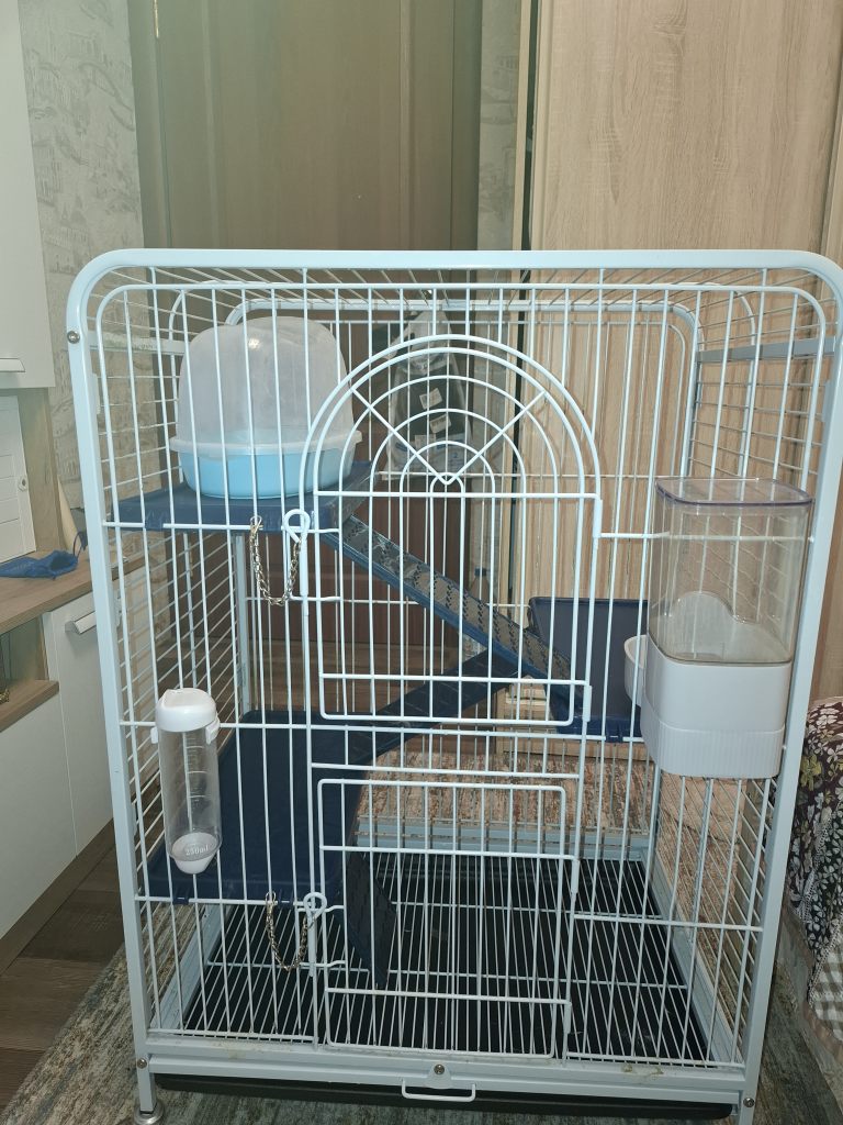 Продам клетку для шиншиллы, вместе с площадками и лесенками, поилкой, кормушкой,ванночкой для купания и 5кг корма впридачу.