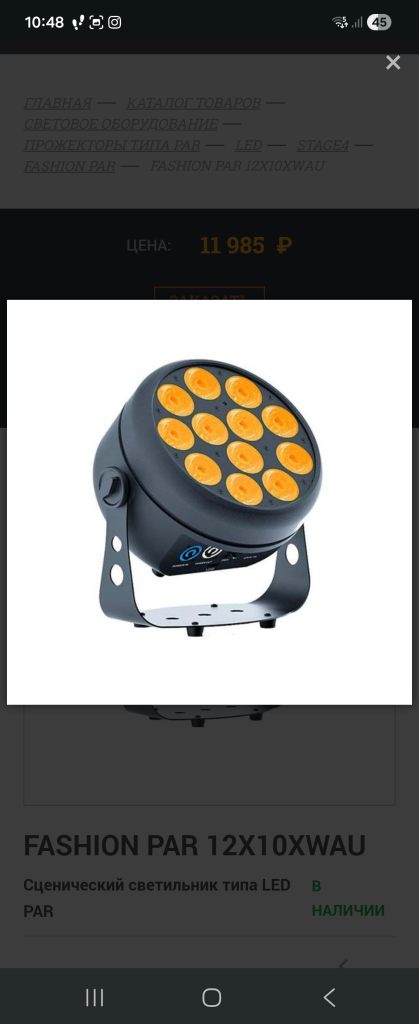 Источник света: светодиоды 12x10 Вт RGBWAUv (6-в-1)