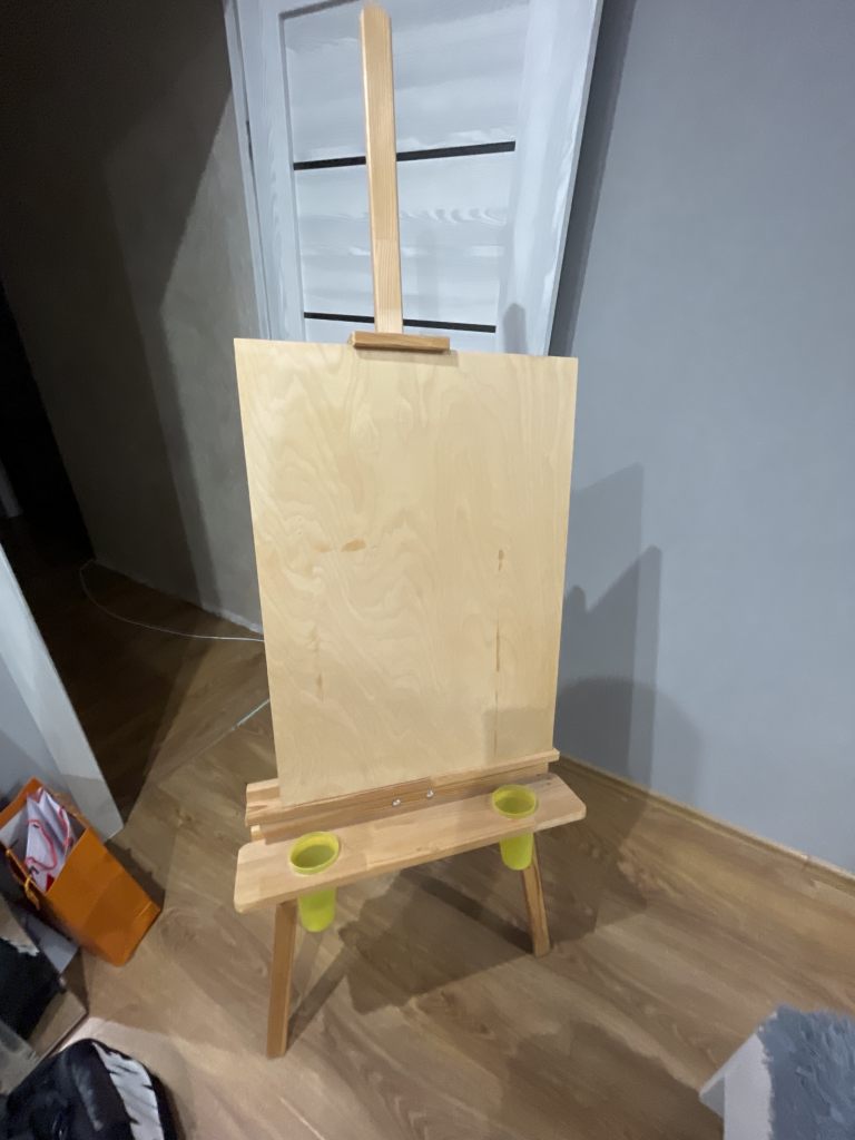 Продаю деревянный мольберт для рисования , использовался пару раз, остальное время стоял в комнате, мольберт в отличном состоянии , в комплекте идут два стаканчика