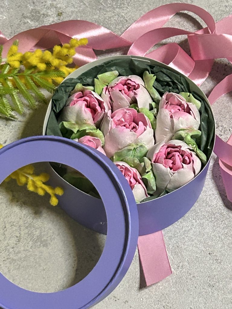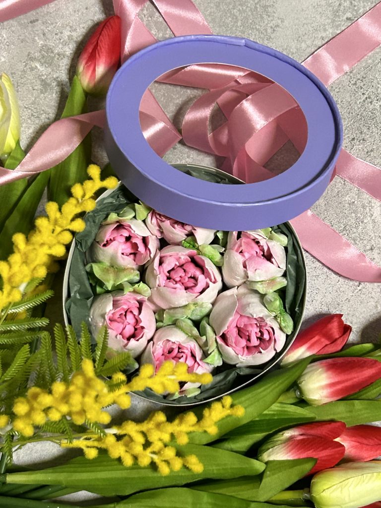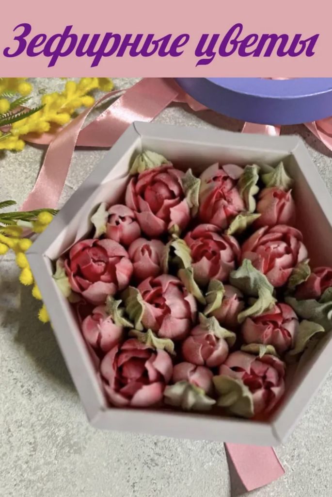 Зефирные цветы в красивой, подарочной коробке на 8 марта для женщины. Красивый и оригинальный подарок.