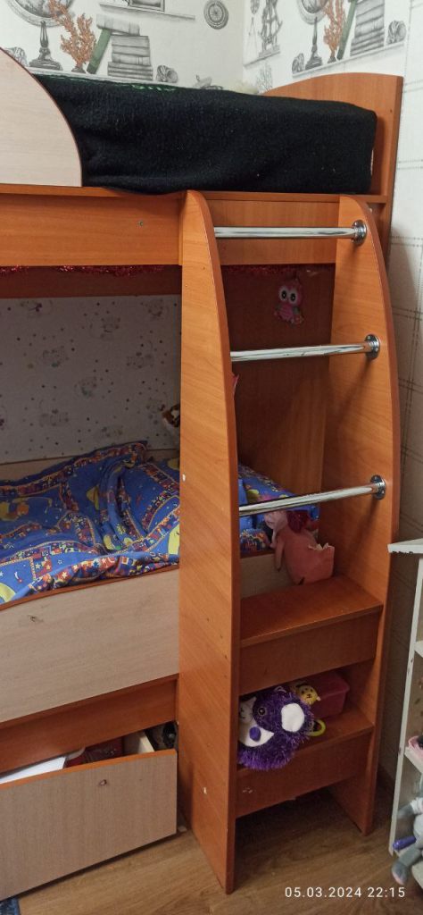Кровать двухярусная, шкаф бельевой
