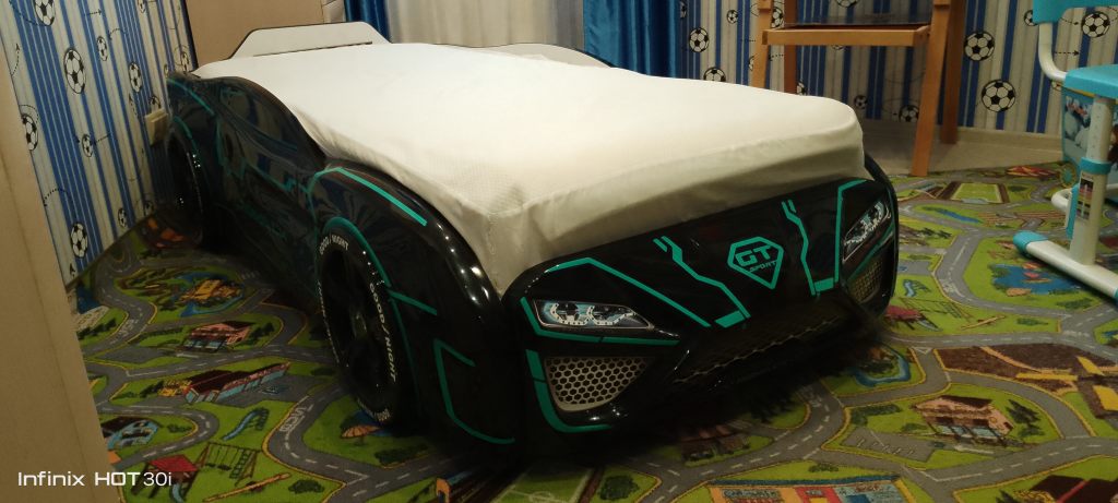 Кровать-машинка, спальное место 180х80, плюс матрас (наматрасник в подарок).