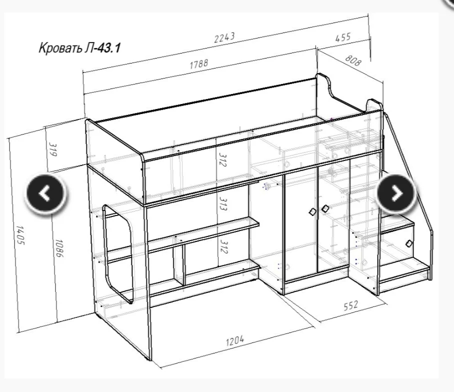 Продам детскую кровать чердак, без матраса и комода. Внешний вид на фото. Габариты на чертеже. За комодом полки как на чертеже. Стоит в собранном виде, в хорошем состоянии. Продаю за ненадобностью. Самовывоз.