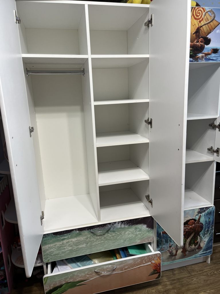 Габариты ДхВхГ 152х190х49. Очень вместительный и яркий шкаф с боковыми полками. Самовывоз, поможем разобрать
