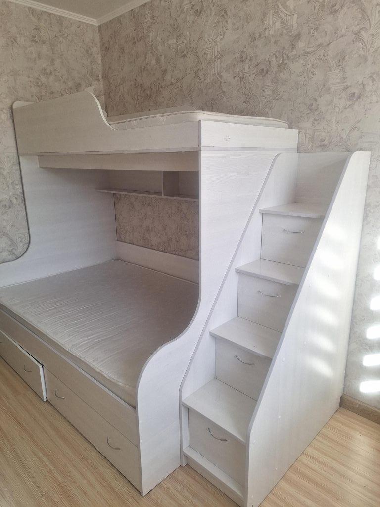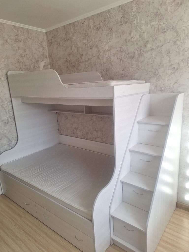 Двухъярусная кровать. Верхнее место ширина 80 см длина 190 см, нижнее 120х190 см. Хорошие матрасы. Ящики все выдвижные и функциональные. Самовывоз ул.Гагарина, 3