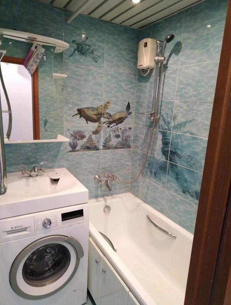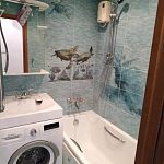 - с целью экономии квадратных метров, стиральная машина находится в ванной комнате под специальной навесной раковиной , это позволяет освободить место на кухне;