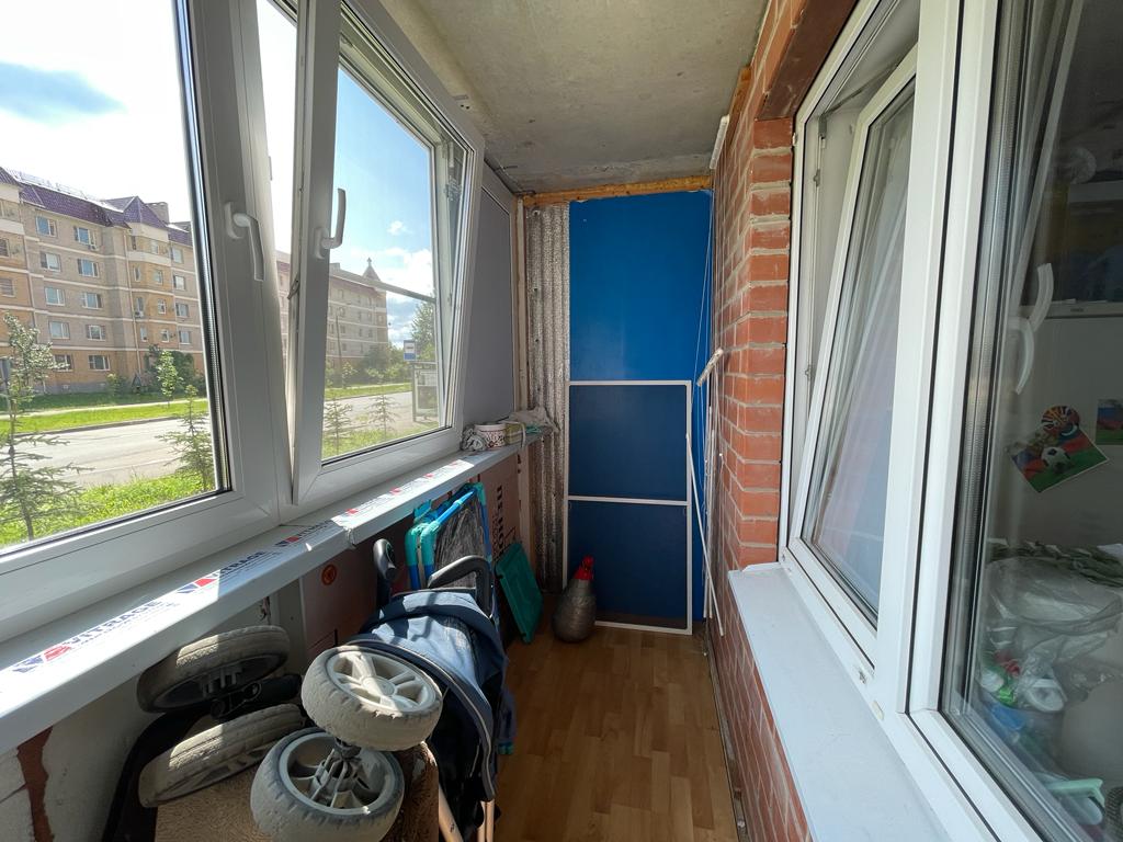 Лоджия с выходом из кухни. Установлены водонагреватель и кондиционер.