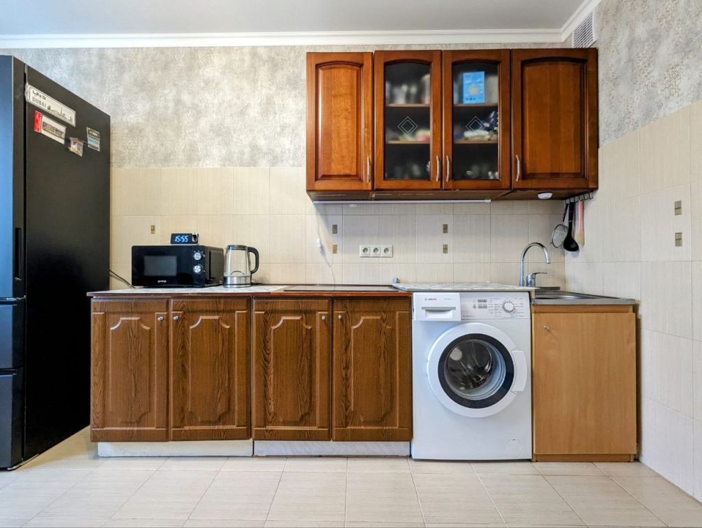 Качественный и современный ремонт позволяет заехать без дополнительных вложений. Кухонный гарнитур остается, отдельные позиции по мебели обсуждаются.