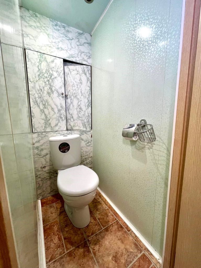 Санузел раздельный (2,1 и 1,2 кв. м). Полы отделаны плиткой, стены и потолки пластиковыми панелями.