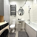 Есть вся необходимая техника: посудомоечная машина, холодильник, стиральная машина, мелкая бытовая техника.
