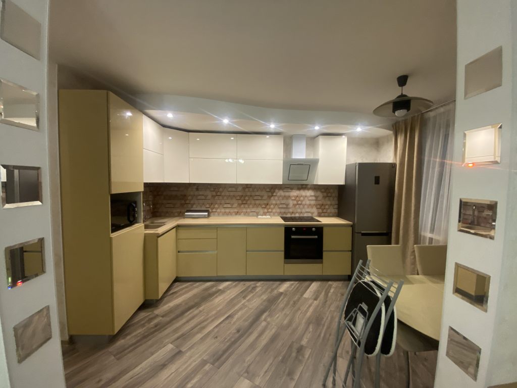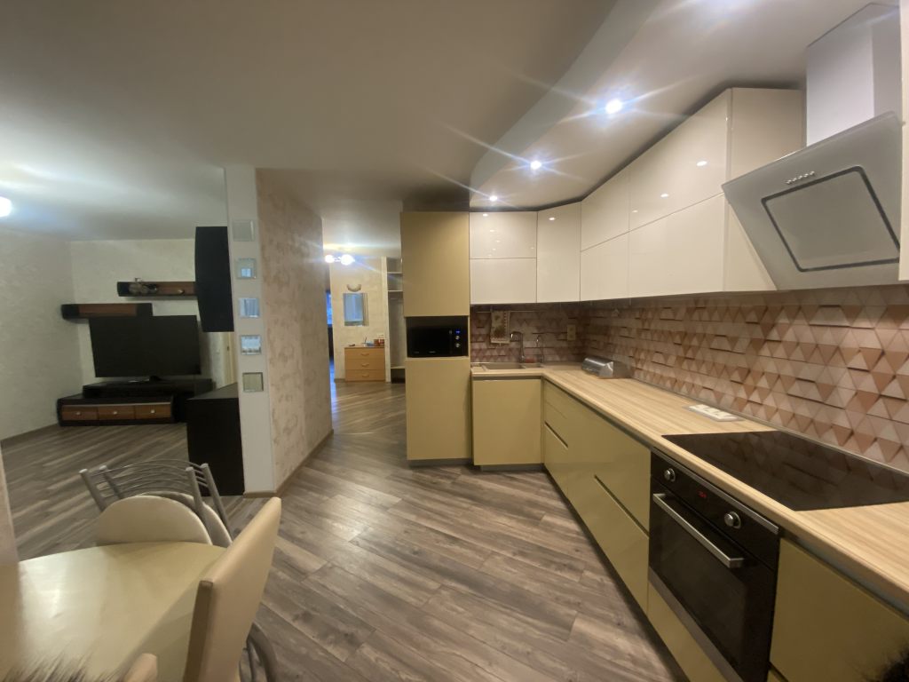 Остается прекрасная встроенная кухня с техникой, встроенные шкафы, стол на кухне, бойлер, стиральная машина, остальное по договоренности.